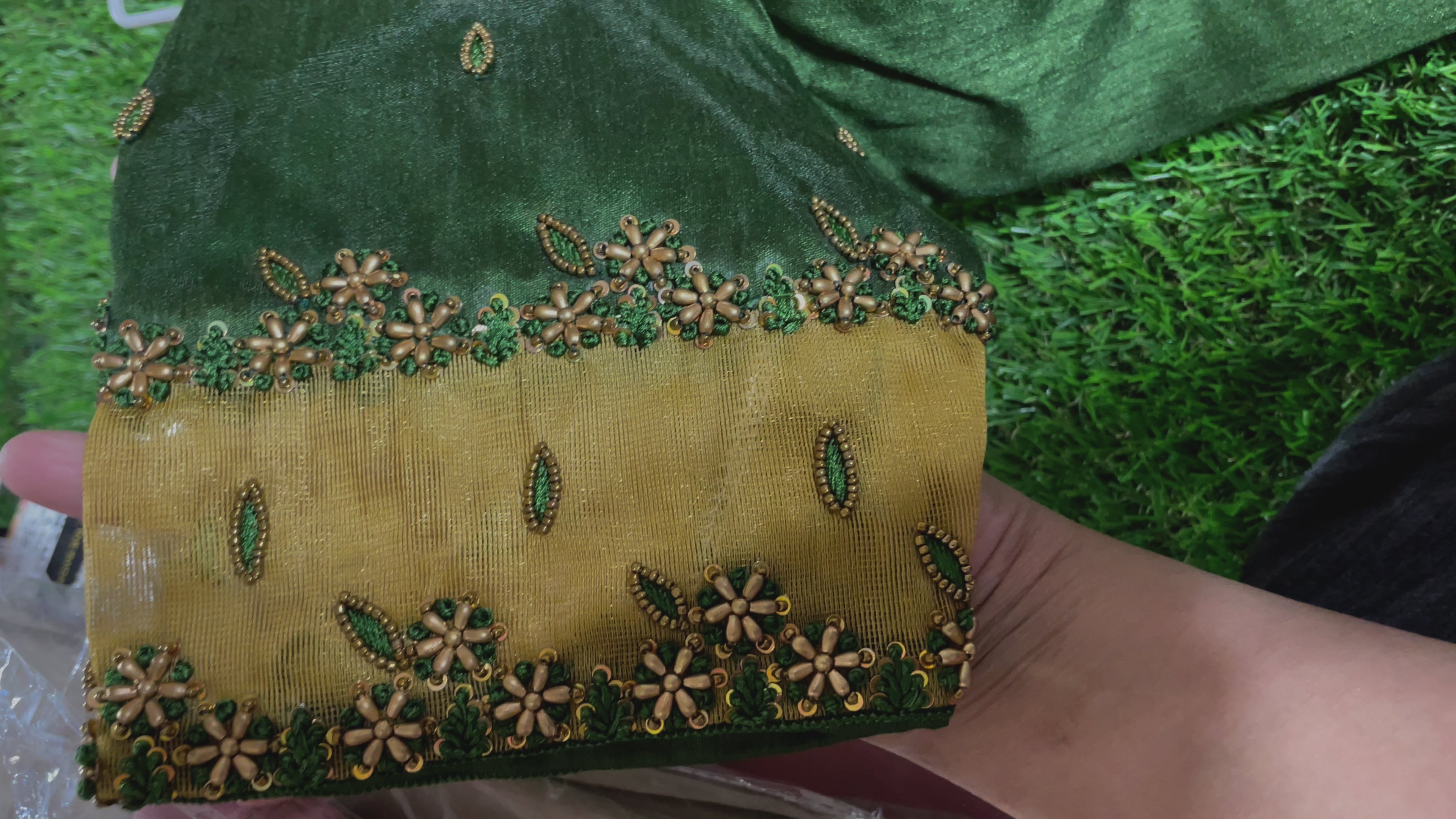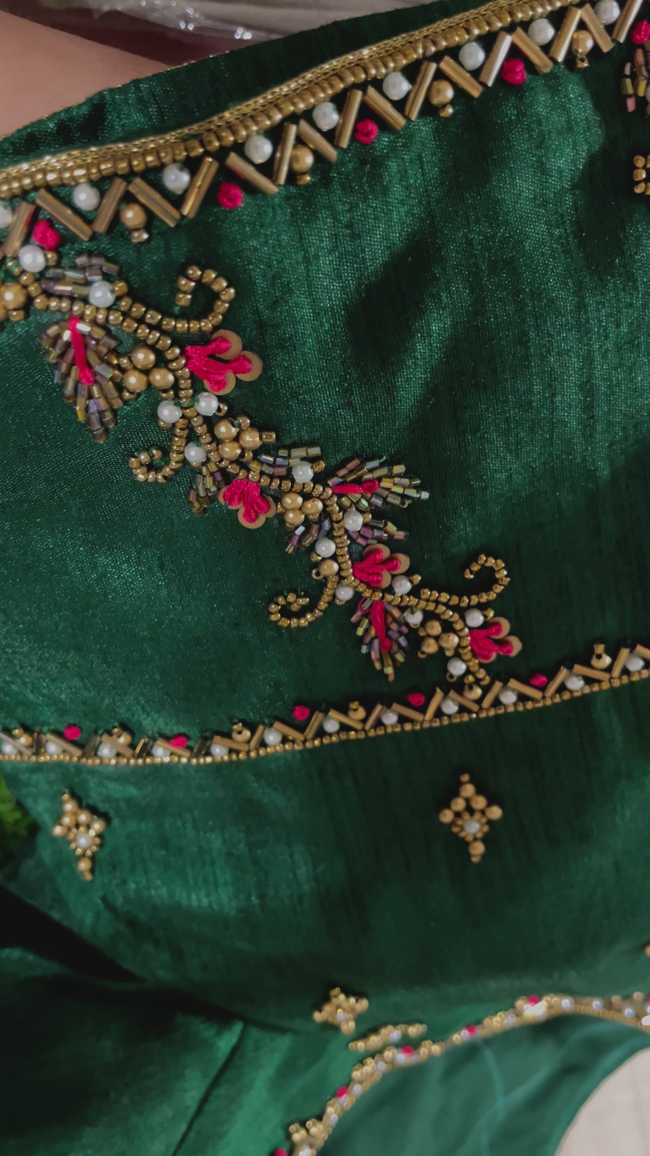These green blouses with aari work is best to pair it up with your silk sarees or enhance any simple sarees that you have!